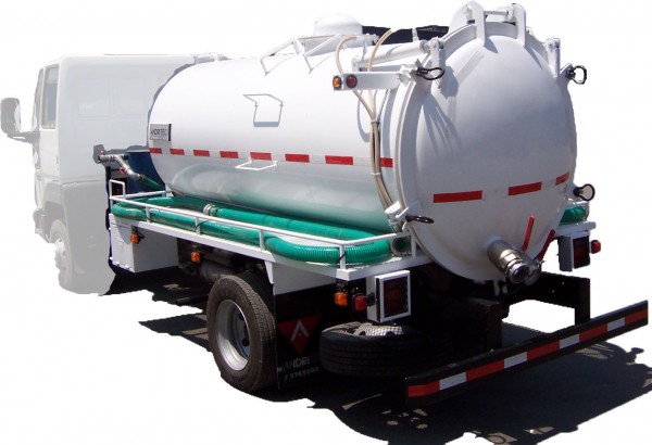 Estanque limpiafosas (también denominado atmosférico) de 5 m3 de capacidad, diseñado para extraer residuos lÃquidos. Cuenta con puerta trasera que facilita su limpieza.