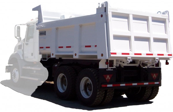 Tolva redonda de 14 m3 con piso en T-1. Diseñada para transporte de áridos y rocas, carga pesada.
