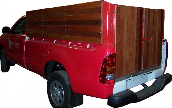Camioneta con proteccción de madera para transporte de herramientas.