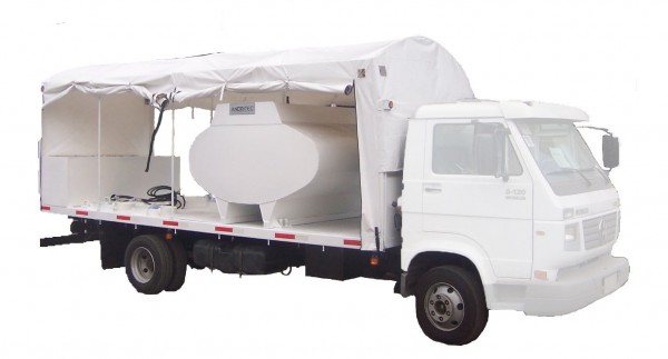 CarrocerÃa de mantención (también denominado camión lubricador) con techo, estanque de combustible de 3 m3 y caja trasera con puerta corredera.