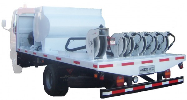 CarrocerÃa de mantención (también denominado camión lubricador) con estanque de combustible de 2 m3 y carretes surtidores necesarios para las operaciones de lubricación .