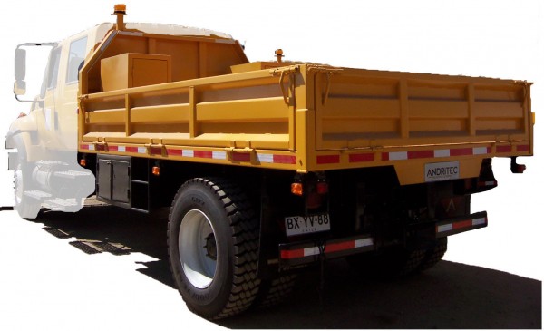 CarrocerÃa especial con barandas abatibles y caja trasera para transporte de herramientas.